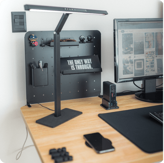 Agrega a tu escritorio de eléctrico accesorios INPRO como soportes, brazo de monitor, reposamuñecas ergonómico, lámparas anti-luz azul y muchos más, permitiéndote personalizar tu espacio de juego según tus preferencias y necesidades.
