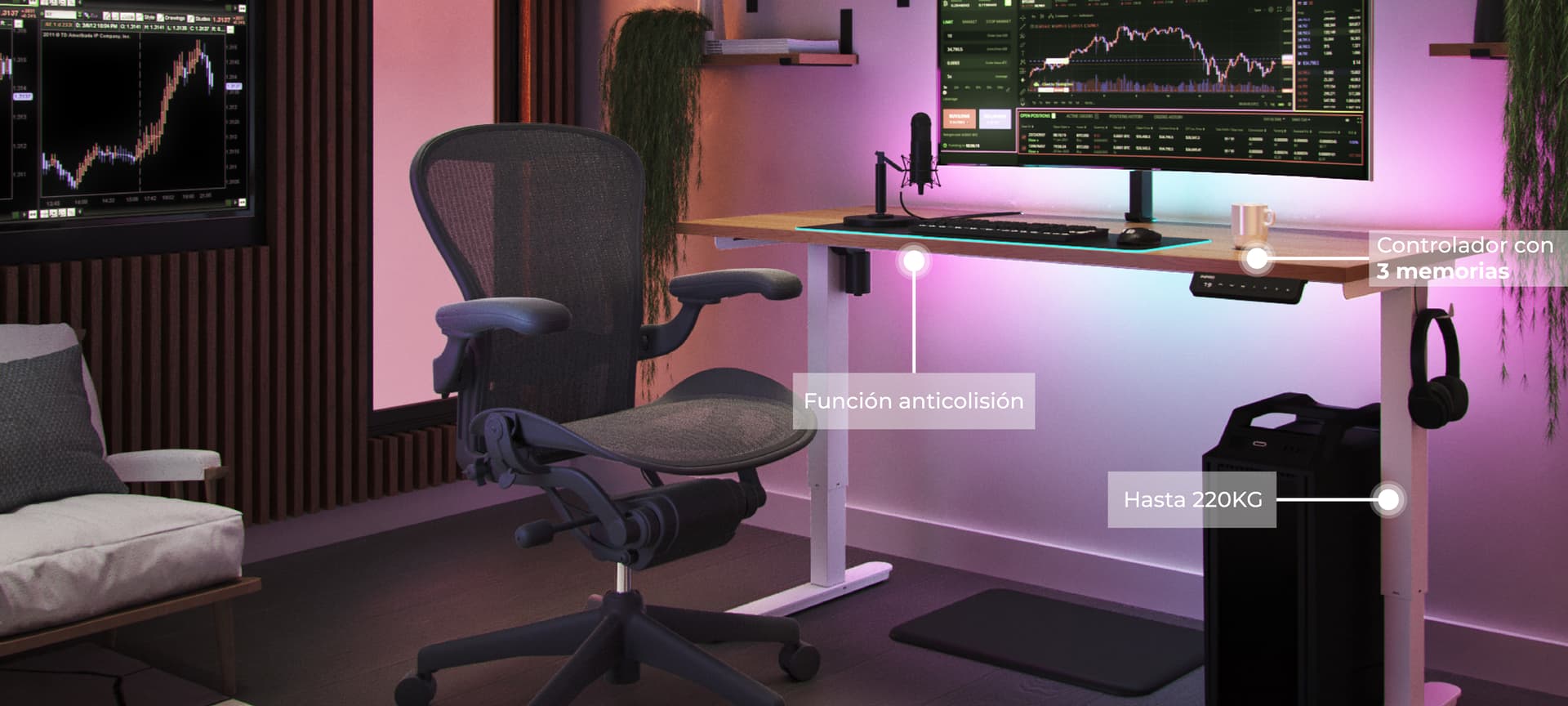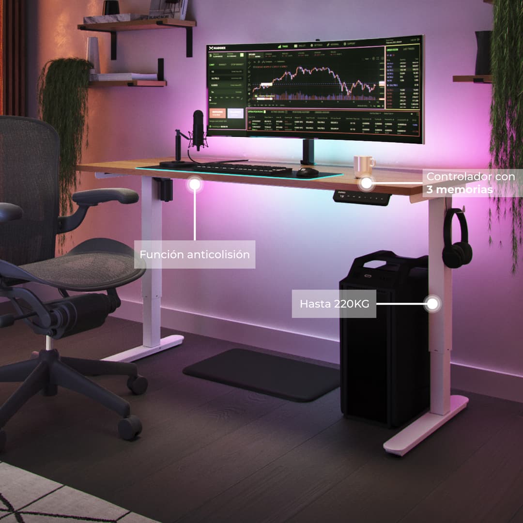 El ajuste de altura y la capacidad de personalizar la configuración de tu escritorio eléctrico promueven una postura mejor y más ergonómica, reduciendo el riesgo de dolor y lesiones asociadas con largas horas de juego.