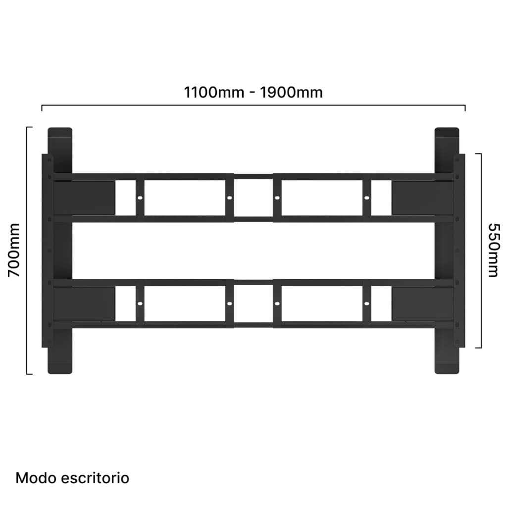 Modo escritorio: Desde 140x60 cm hasta 220x80 cm
